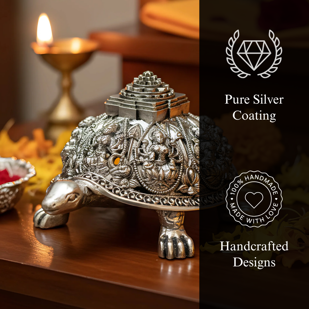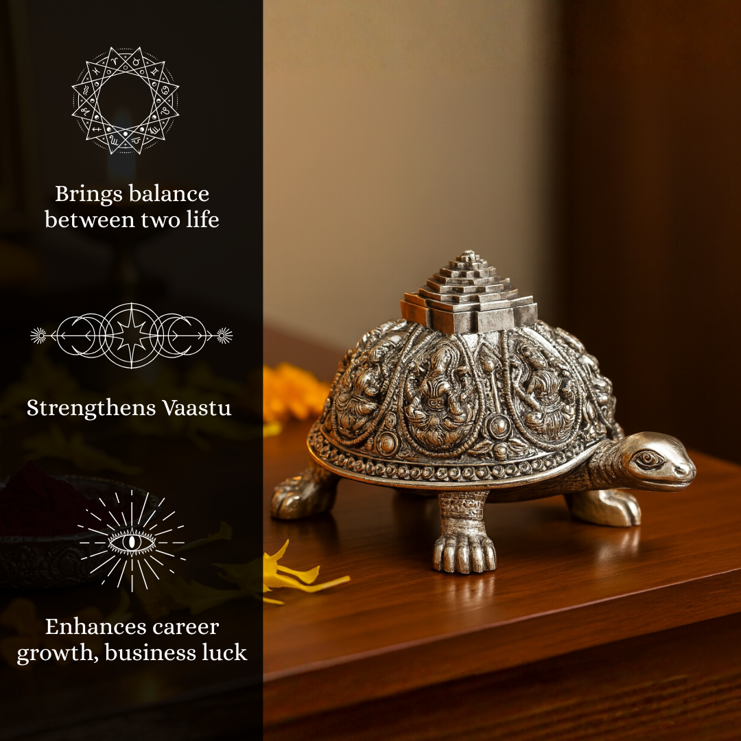 Ashta Lakshmi Tortoise | Pure Sliver Plated | Vastu Home Decor for Pooja Room & Mandir & Office | 3.2 Inch Turtle for Prosperity & Good Luck
